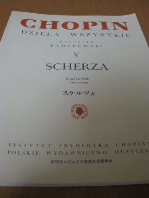 2月の発表会で弾く譜面。ショパン・スケルツォ集といっても何種類もあるのですが、先生のお薦めもあって初めてこのシリーズの譜面を手にしました。見た目的に自分好みでお気に入りです。ほぼ毎日手にして、リビングのピアノの上に置いている譜面なので、やっぱり見た目は重要なのです(苦笑)この譜面を使わない時期でも、一番上に置いていたくなるほど。現在は2番をレッスン中。やっと曲らしくなりつつあります。2月の本番にはどんな仕上がりになっているのか…不安(苦笑)時々、辻井伸行さんが演奏されている同じ曲を聴いて、なんとか自分に活を入れたりして。活が入るような、同じ曲とは思えないほどの違いを感じて呆然としたり…(笑)いやいや、がんばらなければ!!
