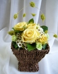 オーダーメードのご注文。四つ目のご紹介です。今回はナチュラルな雰囲気に。名付けて“Natural Garden(ナチュラル・ガーデン)”同じ黄色いバラを使っていても、合わせる器やグリーンで、こんなにも変わりました。お部屋に爽やかな風を運びます!