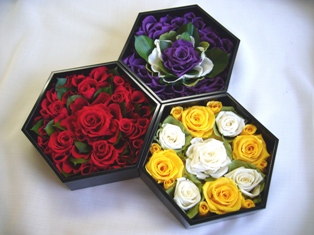 4月12日(木)から15日(日)にジュエリータワーTASAKI銀座で開催される、第5回 フロールエバー プリザーブドフラワーコンテスト幸運にも一次審査を通過し、作品を展示させて頂くこととなりましたコンテストの今年のテーマは ”Harmony”。Color(色)Shape(形)Material(素材)Culture(文化)の四つの部門の中から、私はCulture(文化)にエントリーしました。作品名は「天平華六角三段箱(テンピョウハナロッカクサンダンバコ)」~甦るいにしえ文化の彩り~こんな風に三段重ねになるんです。私の故郷”奈良”の地は、その昔、都として栄え、唐の影響を受けた天平文化が花開いた場所です。今はすっかり退色してしまった多くの文化遺産も、当時はさぞ色鮮やかだったことでしょう!それを再現してみたら・・・?そんな思いを元に、今回の作品のコンセプトは、次のように決めました。”日本・中国・コロンビア(プリフラ生産国)の三つの国の文化が、時代を超えて作品の中で ”調和・Harmony”する。”正倉院に残る絹織物の紋様などを参考に、自分らしさを活かした新しいデザインを、あれこれ思案しながら仕上げました。会場には、たくさんのプリザーブドフラワー作品が会します。どんな作品なのか、私も今からとっても楽しみです!皆さんも是非、足をお運び下さいませそれでは、行ってきま~す!