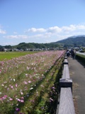 実は私、学生時代に“万葉集”にかかわる機会がありまして、以前から“万葉ゆかりの地”を訪ねる旅をしています。卒業後も会に参加させていただいて、1年に1回程度ですが、いにしえのロマンを求めて、遺跡や歌碑をめぐり歩いています。さて、今回訪れたのは万葉旅行の王道とも言える 「明日香」 (奈良県)でした。著名な万葉学者 故犬養孝先生の生誕百年記念イベントが開催されていました。当日のお天気は文句なしの快晴。近鉄橿原神宮前東口を出発して、甘樫丘や飛鳥坐神社、万葉文化館、犬養万葉記念館などをめぐりました。こんなに心地よいお天気の中を、てくてく歩くのは久しぶりで、とても気持ちが良かったです。稲刈りの終わった田んぼや、コスモス畑、大和の山々の稜線を目にしながら、自然と暮らした千年以上も昔の人々が、季節を織り込む歌を詠みたくなる気持ちが、分かるような気がしました。=コスモス畑==歌碑のひとつ。(甘樫丘)=