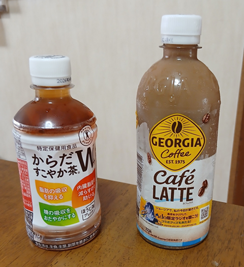 今日もカメラで無い記事です。ローソンと自販機でこの2本をゲットしました。幾らで????????ハイ!! それが2本とも無料なんです。右のジョージア・カフェラテは日本コカ・コーラのアプリ「coke on」で15週間目標歩数 35,000歩/週を 達成したご褒美???15週と書きましたが、歩数とは関係ないボーナスのメタルが4枚含まれていますので実質は11週のご褒美で無量で自販機で貰いました。左の「からだすこやか茶W」は同じくコークオンの抽選に当たった商品で・・・・・これはローソンでスマホを提示してもらいました。こんなことがあるので飲料を自販機で買うときも、コカ・コーラ社の赤い自販機を探すようになりました(笑)