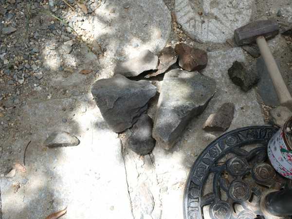 今日も暑い中パラソル立てて「石工」の仕事? して来ました。今日集めて来た石はこれだけ・・・これは昨日載せた写真ですが・・・今日の仕事はたったこれだけ・・・大した面積ありませんが・・・「ローマは一日にして成らず」 否 「石積みは一日にして成らず」まだまだ完成は先、ヒマ潰しのタネは尽きまじ・・・です。