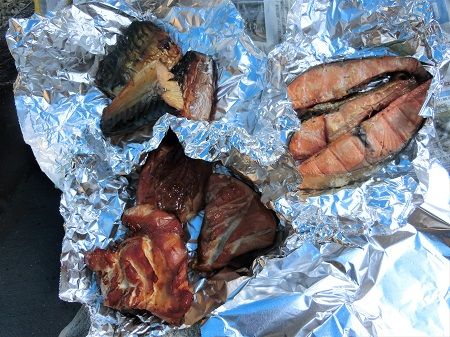 なんと、ムネ肉、サバ、鮭の3種類の材料持参でした。