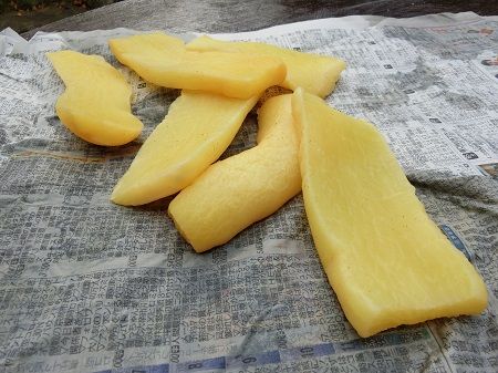 そして、2人分のくん製をするには時間が掛かるので先に私ひとりでいぶりがっこを作りました。