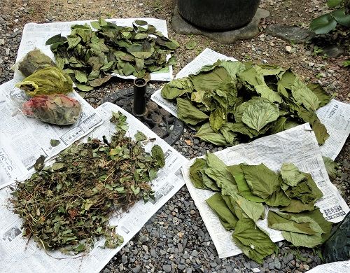 そう言えば・・・雨が続いた偶の晴れた日は薬用茶の天日干しの日で・・・