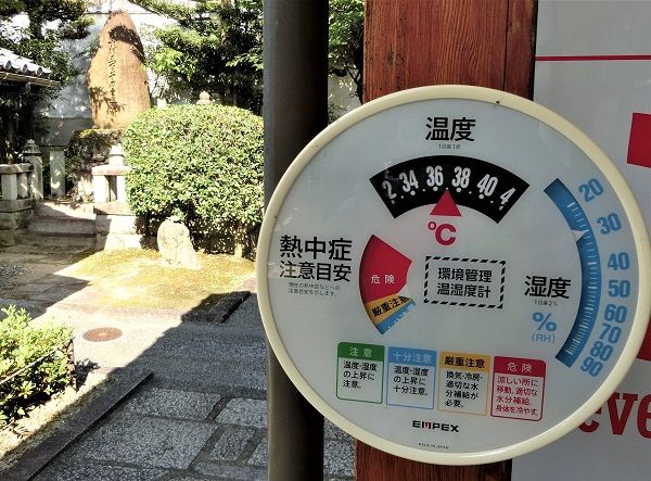 さて、いよいよ大谷祖廟に着いて、お墓の年間管理料を払おうと事務所に寄りますと・・・この温度計です。