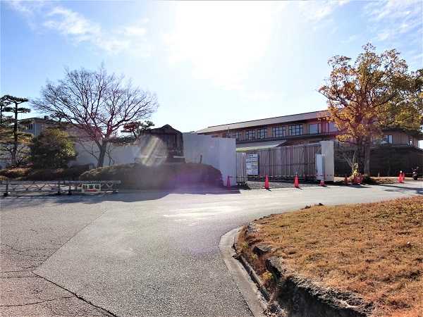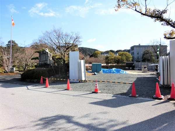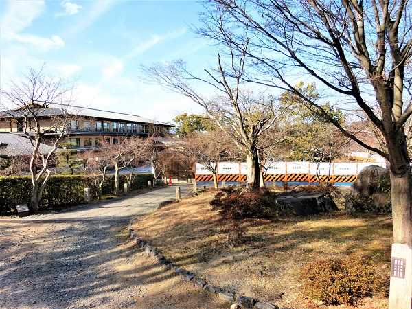 建つ場所はこの冠木門の右・・・黄色と白のバリケードが見える場所で・・・