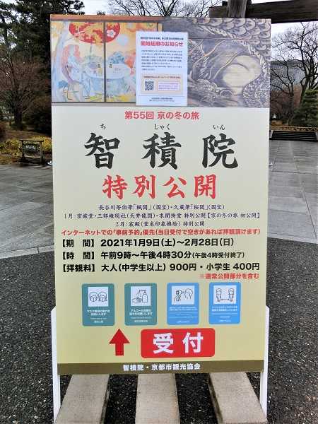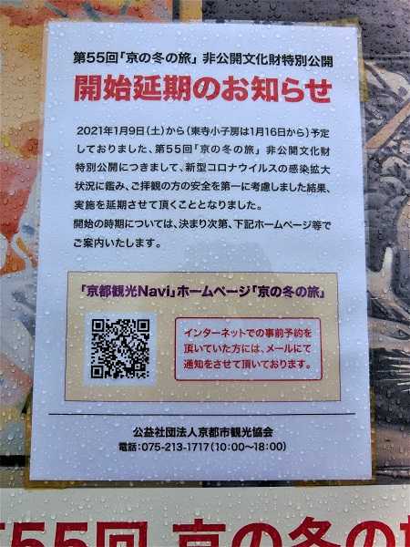 昨日智積院を通りますと、その冬の旅の看板が立っていたのですが、その上に小さい貼り紙が・・・