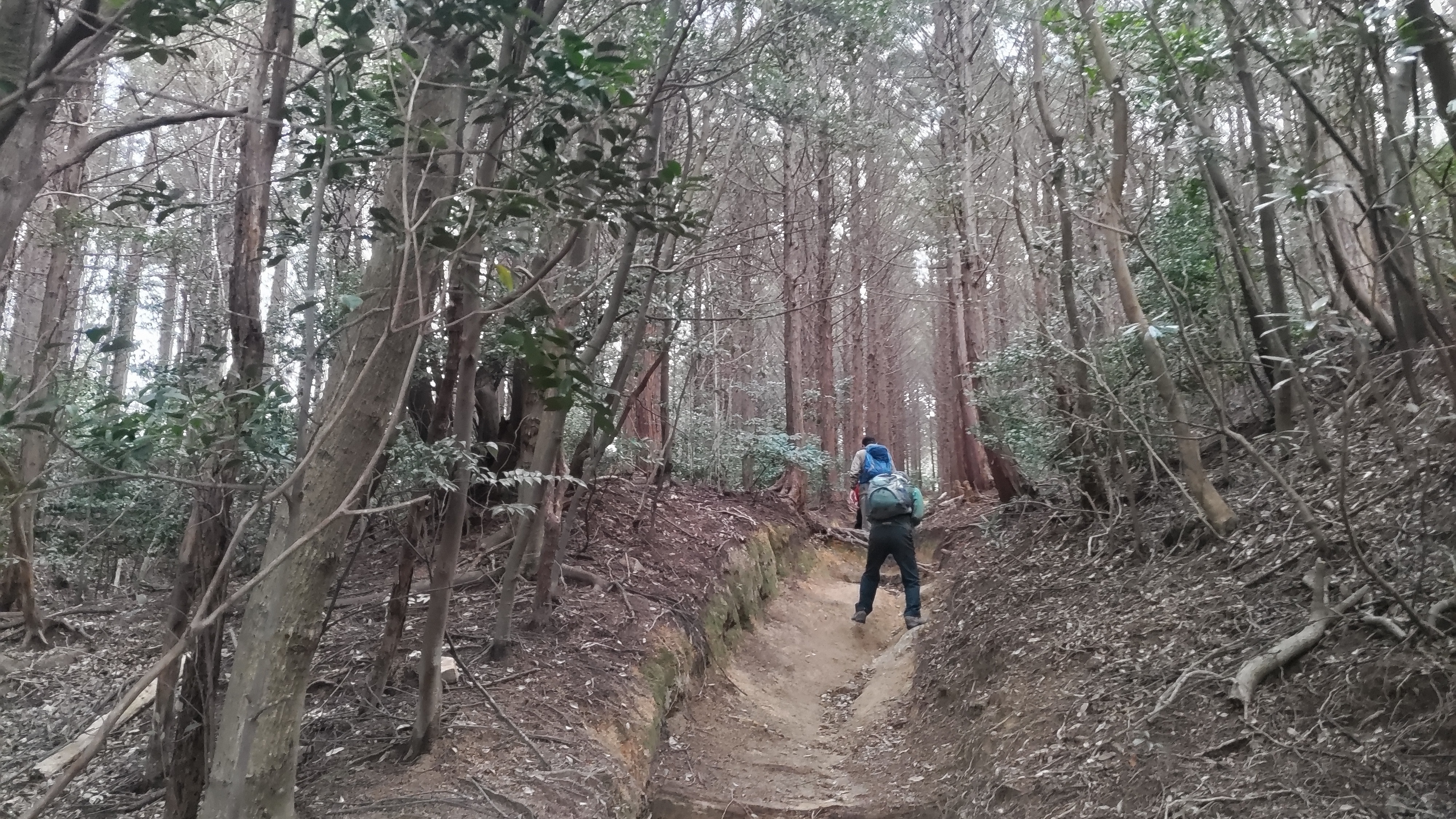 早朝に門司港に着き、その足で登山始めると・・・最初は植林でしたが、直ぐ雑木林となりました。