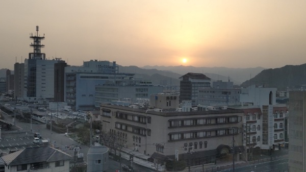 登山と観光を終わり、この夜の宿は山口市の 湯田温泉 (この写真は翌朝ホテルの部屋からの眺めです)