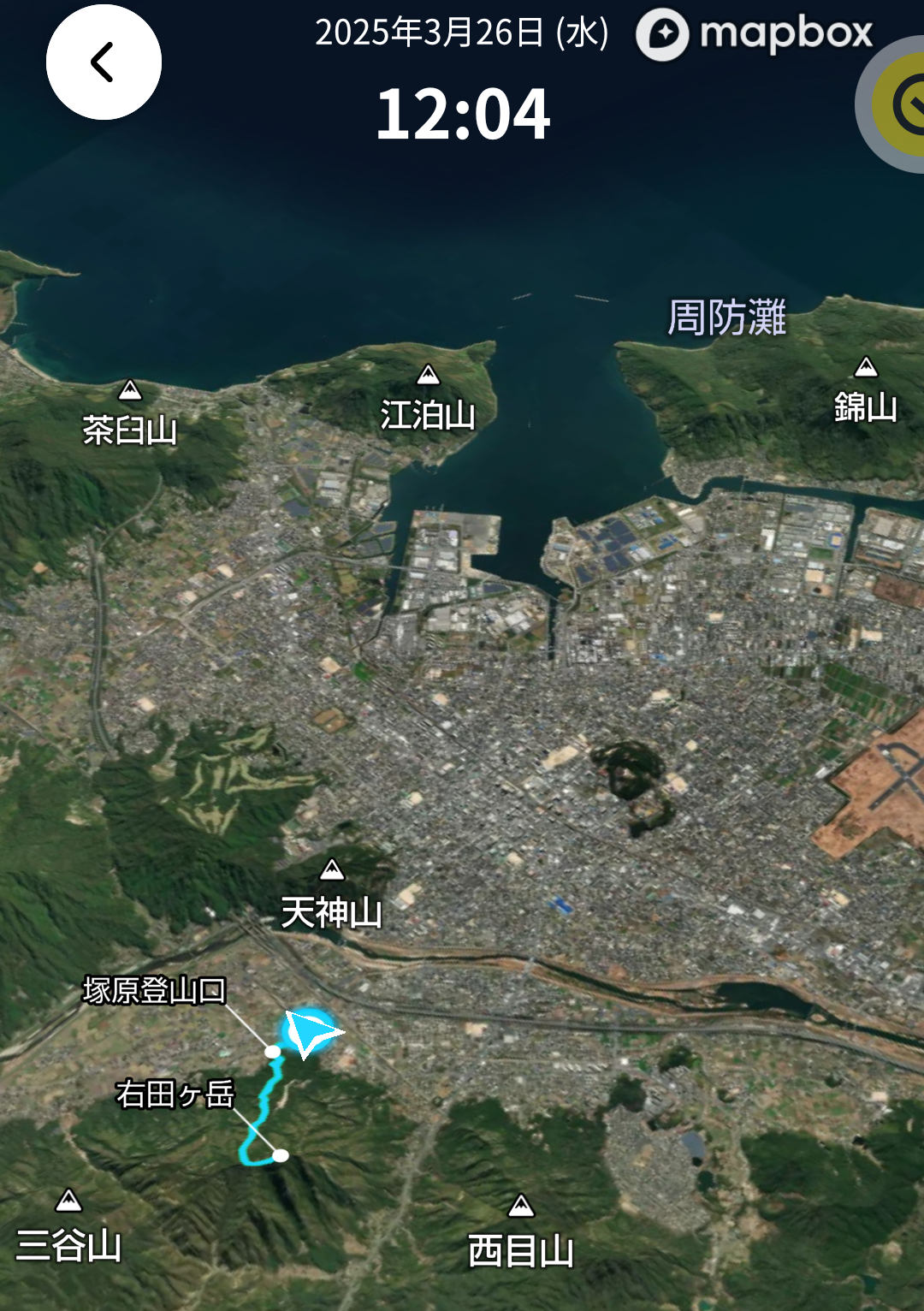湯田温泉に泊まって、翌日に目指したのはは 防府市 のこの 右田ヶ岳 (426m) でした。