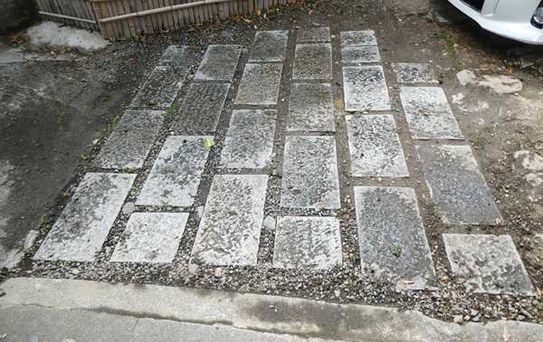 その後10年経過する間に、タマリュウはほゞ消滅し、駐車時にタイヤの動きで敷石がズレてこんな状態になっていたことも書きましたが・・・・