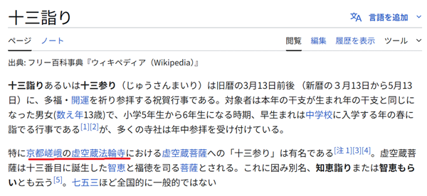 十三詣りについてウイキペディアにはこの様に書かれています。