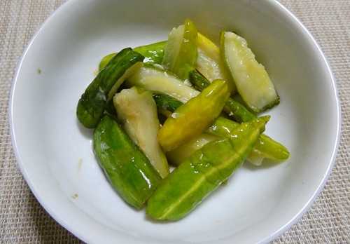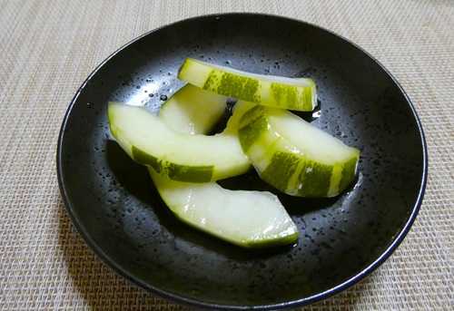 今回はこのキュウリ、少し干してから漬けたらしいです。