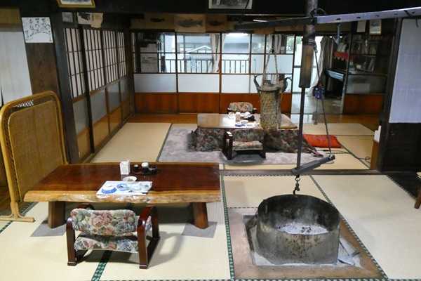客は私ら3人を含め8人、囲炉裏のあるこんな部屋での食事でした。
