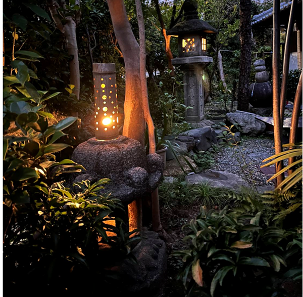 そのひとつと前に買ったものを灯篭と竹灯りにセットすると・・・・