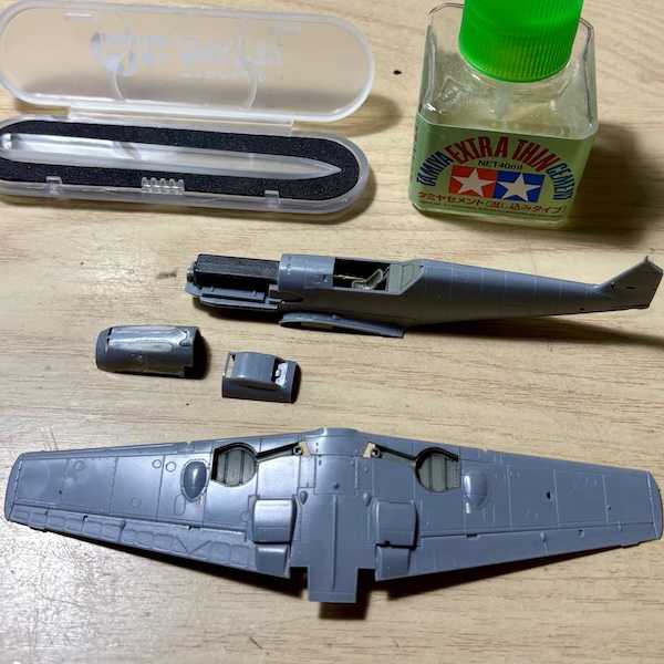 細かい部品の塗装が終わり、組み立てに入ります。胴体、主翼といつも思うのですが、本当…