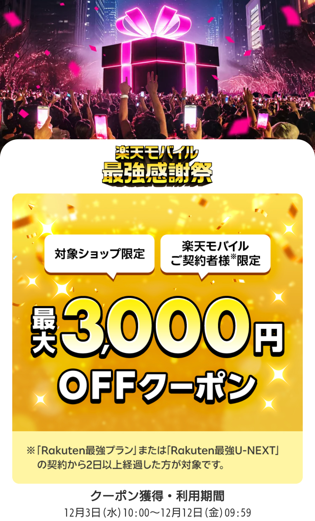 楽天モバイルユーザーなら、昨日から先行セールがスタートしてます!!