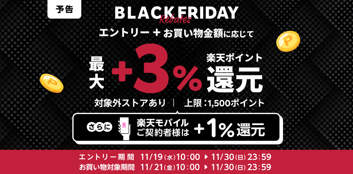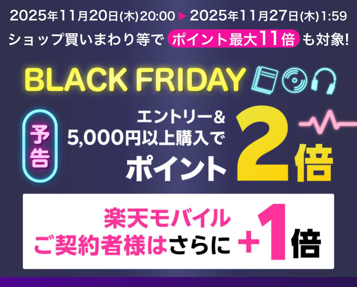 楽天ではブラックフライデーが始まります。