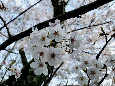 大きな樹に咲く桜の花が…降ってくるかのように見える、