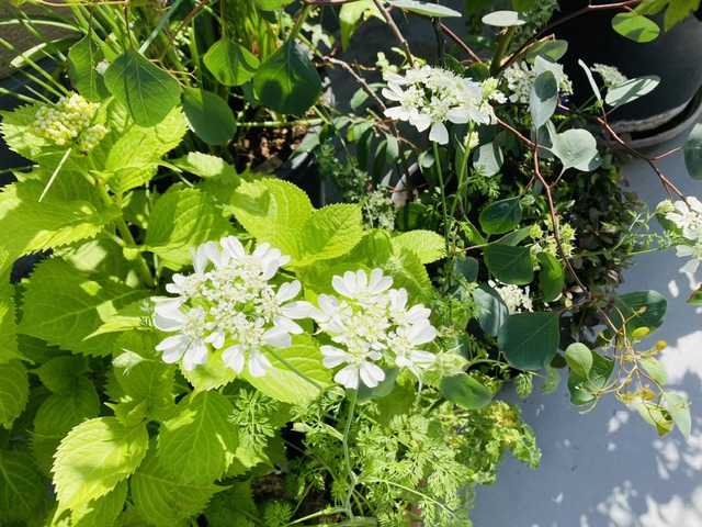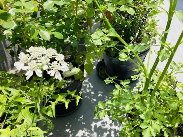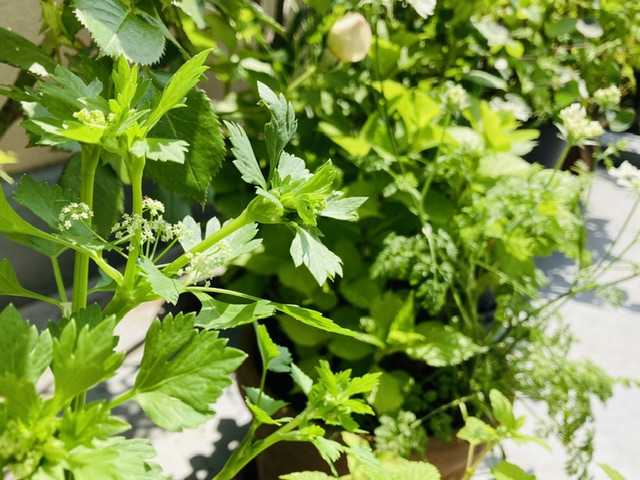 スープセロリ の開花に…寄植えの管理についての感想も。