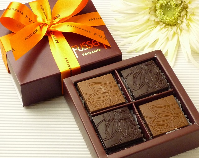 生チョコフュッセン 12個入り 限定20個三嶽シェフオリジナルの手作り生チョコです。ちょいとジャリジャリした味がポイントです。チョコはヴァローナです。生チョコフュッセン 12個入り 限定20個 価格 1,000円 (税込) 送料別 フランス産の高級ミルクチョコレートの風味と、乾燥クレープのカリカリした食感がコラボレート。新鮮な生クリームをたっぷり使っているので、ちょっぴりビターで、とろける食感を実現しました。お店では、売り切れ続出の超人気商品です!フュッセンのオリジナルリボンでラッピングしてお届けします。*冷蔵商品のため、お届け後は冷蔵庫にて保管願います。※ピック付き ★★原材料★★チョコレート、生クリーム、トリモリン、プラリネ、小麦粉★★賞味期限★★2010年2月18日まで★★配送方法★★冷蔵便