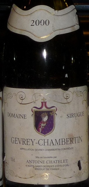2000 CP93ラブレ・ロワ社の系列のアントワーヌ・シャトレの作るワインです。ドメーヌ・シルギュと書かれていますが、ロベール・シュルグとは関係ありません。比較的安く手に入れたジュヴレで買った時は酸が強く、果実感も薄くつまらないワインでした。この手のワインは寝かせると良くなる事が多いので7年間セラーで寝かせてみました。2000年にしては古酒化が早いですが、古酒の一歩手前のよく熟れた美味しいジュヴレに大変身です。色は褐変して琥珀色が入った薄めのルビー色、香はとても素晴らしく、獣、バラ、紅茶、森の下草で豊潤です。味わいは枯れて丸くなったタンニン、柔らかくエレガントな果実味、余韻の綺麗な酸、最後に残る甘露な甘味、ほぼ完熟の状態です。安いジュヴレでも大化けするのがワインの面白さですね。正に癒し系のワインでした。