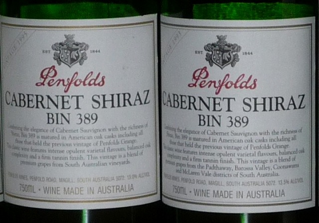 ペンフォールド BIN389 カベルネ シラーズ [2005]年 ジャパンワインチャレンジ2004 金賞受賞酒('03VT)Penfolds Bin389 Cabernet Shiraz 2005 2002 CP92BINとは樽のロットナンバーです。ペンフォールドやオージーワインでは同様なブドウ品種のワインを多品種作っているので、このナンバーをワインの名前に使っている物が多々あります。畑の名前が無いのでこの様になったのでしょう。ペンフォールドでも他にBIN407とか311、707等があります。 389はカベルネが60%位シラーズが40%位のブレンドです。先ずは02の389です。非常に魅力的なワインだと思います。軽い熟成感もあって美味しいワインです。色は濃いめのガーネット、プラムや砂糖漬けのサクランボの香り、胡椒、チョコレート、スパイス、丁子、グローブ、味わいは濃厚な果実味、しっかりしたタンニン、綺麗な酸、バランス良いボリューム感のあるワインです。シラーズ由来のスパイシーさもあってガッツリ系の肉料理に良さそうなボディーのあるワインです。しかしパワー感が強過ぎず、エレガントにまとまっているのでスイスイ飲めそうです。2002 Penfolds Cabernet / Shiraz Bin 389 Wine Advocate # 161Oct 2005 Robert Parker 88 Drink: 2005 - 2011 $25 (25) A good value from Penfolds is the 2002 Bin 389, a blend of Cabernet Sauvignon and Shiraz aged in large American hogsheads prior to bottling. It offers peppery, earthy, black cherry, and cassis fruit, notions of herbs and spice box, and a medium-bodied, soft finish. Drink it over the next 5-6 years.