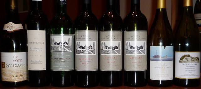 シャルドネ2002マウント・メアリー オージー1万円クラスのシャルドネ、味は濃いが02にして古酒化の一歩手前、微妙にヒネも出ている。色も黄金色で完熟状態、香は松脂やオージー特有の香りもあって好みの分かれるところ、酸は豊だが切れは弱い。コンディションにやや難があったワインかも・・シャルドネ アート・シリーズ 1999ルーウィン・エステートオージートップの1万円クラスのシャルドネ。99は完熟ですが、綺麗に熟成してヒネはありません。オージー特有のユーカリ香は僅かに感じます。ナッツ感が豊で胡桃のオイルの様な感じです。実に堂々とした風格のある個性豊かなワインです。マイクル・シラーズ 1998 ウィンズクナワラ エステート実に素晴らしいワインです。凝縮感があってエレガント、ファットなボディーは実に98らしい仕上がりです。透明感があって複雑で、適度な熟成感があって旨い!旨い!香もスパイスと果実が良いですよ。1番好きなオージーシラーズです。マイクル・シラーズ 1996 ウィンズクナワラ エステート 98と同様グレート・ヴィンテージです。このキュべはこの蔵のシラーズの中で最も良い物を5%選んで瓶詰めしています。ラトゥール的な凝縮感を持ったワインだと言って良いと思います。濃くて重いのに、酸が豊で切れが良く、エレガント!マイクル・シラーズ 1993 ウィンズ クナワラ 更に古い93です。適度な熟成感があって、プラム、丁子、グローブ、杉、大地の香が立ち昇ります。酸が豊で切れがよく、ファットなワインなのに繊細で透明感があります。滋味のある料理との相性も良く、今日の蝦夷鹿とも良く合いました。美味しいです。マイクル・ハミテージ リミテッド・バレル 1991 ウィンズ これは蔵出し古酒です。圧倒的に旨いですね。果実の甘みが違います。値段倍でもおかしくないです。熟成感があってマイルドでコクがあって果実味が豊で繊細で複雑で香も豊潤です。個性があって実に素晴らしい!!オージーワインの傑作!お食事はアミューズグールAmuse gouleブルーチーズのリエット天然ジビエのパテ(エゾ鹿、猪)Paté de gibier朝日町インスパイア"たら汁ブイヤベース"Bouillabase au morue 鱈の肝・白子・タラコ・鱈の身が入って美味、当然ハマグリの出汁も効いてサフランの香りが素晴らしい!!ブイヤベースには無くてはならないアイオリソース。唐辛子入りニンニクマヨネーズ、クルトン これをスープに溶かして頂きます。猟師・桑原氏より、エゾ鹿の6時間赤ワイン煮込み フロマージュfromage