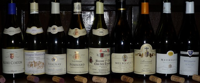 今回はムルソーとコート・ド・ボーヌのワインです。ムルソーのコンデュション不良が出てしまいました。失礼しました。 白ムルソー ナルヴォー 2007 バロ・ミロムルソー アラン・シャヴィ 2006 ムルソー ウジェーヌ・ブルトンヌ 2005ムルソー ルモワスネ 1998 赤コート・ド・ボーヌポマール 2006 ヴォーシェール ヴォルネィ 2005 ビトゥーゼ・プリュールシャサーニュ・モンラッシェ V.V. 2004 ベルナール・モレアロース・コルトン 2003 ポール・ピドーアミューズグール海の幸キャベツ包み蒸し広島産・牡蠣リゾット酸っぱい牛肉の赤ワイン煮込み"ブッフ・ブルギニョン"フロマージュ