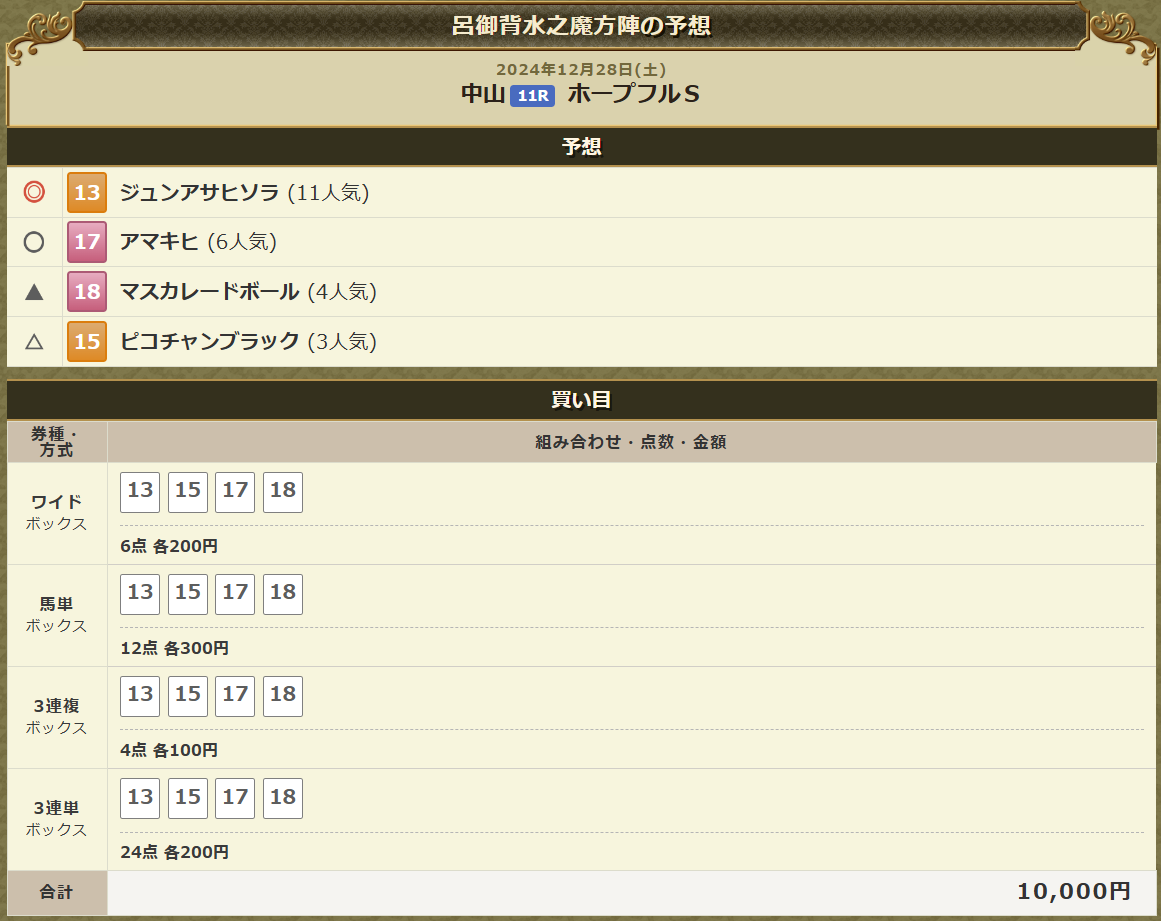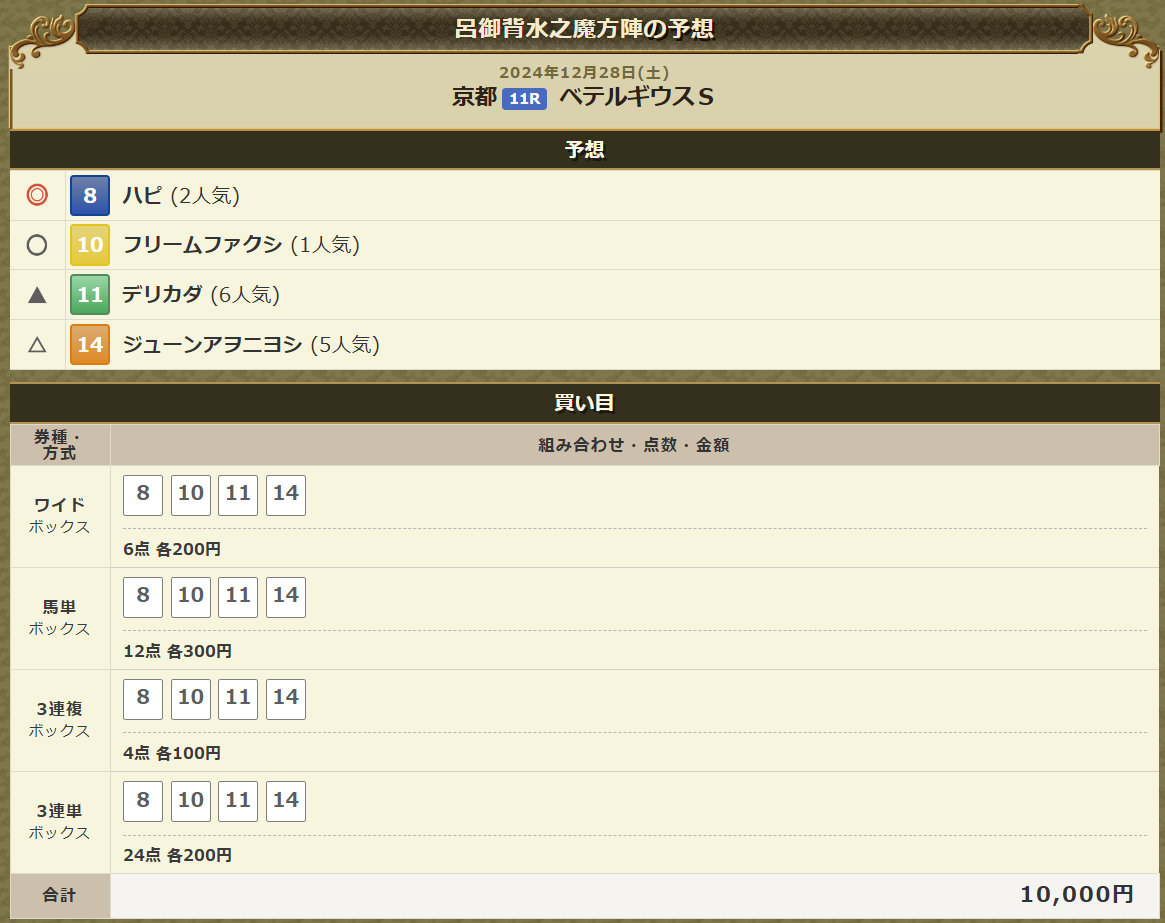 本日のメインレース🏇🏇🏇【買い目付】明… 2024年07月14日
