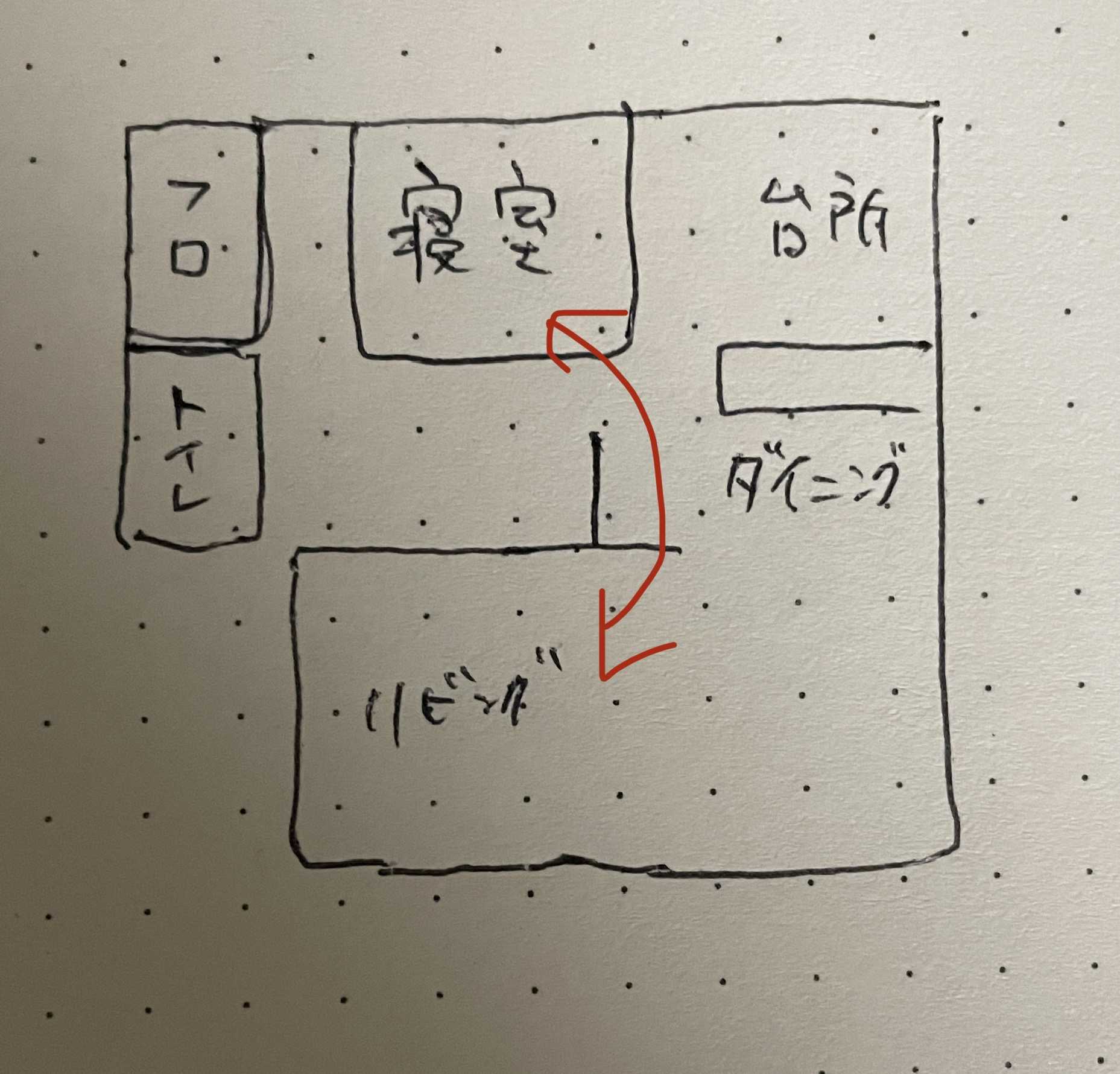夜中、私はリビングにマットレスを敷いて寝ることに。