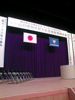 朝からシンフォニア岩国で山口県の知的障害者施設福祉振興大会が行われ、MC(司会)をした。会場には1000人近くの施設関係者の人が集まった。ロビーには障害者の人たちが作った手芸作品の展示即売会もやっていた。↑笑顔の爽やか~なボランティアのお兄さんが売り場担当をしていた。朝、スタッフの皆さんと一緒に集合したらその中に、偶然友人のお父さんもいた!昨日の今日だからか、ついつい、なぜかJTPチップの話になり、偶然、その友人のお父さんも、首からぶら下げていると言うではないか!↑それにしても、色んな人の間に、広がっているのには、びっくり!10時から式典が始まった。↑朝10時から午後3時にまでわたる、長丁場のイベントだったので、私も司会の演台を、時々離れ、裏方で各氏の講演を聞かせていただいた。午後からは、東京から有名な堀田力(ほった・つとむ)氏の講演も行われた。堀田氏は、京都大学法学部卒業後、検事を任官。1976年東京地検特捜部検事としてロッキード事件を担当。「カミソリ堀田」と呼ばれた。90年法務大臣官房長、翌年最高検検事を歴任し、退官。弁護士登録。95年さわやか福祉財団理事長となり、以降、福祉活動に情熱を注いでいる。過去、テレビなどの報道番組に出演した事もある有名人。堀田氏のお話は、知的障害者の人たちも、素晴らしい長所や能力を持っている事があり、健常者のそれより、優れている場合もある。その一人一人の能力を引き出し、認めてあげる事で、社会に有益な働きができる場合もあり、健常者が障害者をいたわる、一方通行の働きかけが大事なのではなく、隠れた才能や特長を、引き出してあげ、健常者と相互に助け合っていけるような社会環境を作り上げる事の方が大事だ。という内容のもので、とても感心し、ためになる話だった。私も、常々思うが、今の教育のあり方は、まんべんなく何もかもができるのが優秀というあり方で、偏差値教育は、表面からは押し下げられたとはいえ、今だにその呪縛から抜けきれない競争社会だと思う。その競争社会が、暗に、いじめの温床になっているという風にも考えられなくも無い。知的障害者で思い出す最たる人は山下清。彼の才能は抜群だった。同級生などを思い浮かべても、学力は低くても、絵の上手な者、お喋りが上手な者、運動の得意な者、など、それぞれの素晴らしい個性を持った人がたくさんいた。私は、子供の頃から、人前でお喋りをするのが好きな方だったが、こんな私よりも、お喋りが得意で、ウーン、負けた!と思わせる人間は、他にたくさんいた。その同級生の口から出る言葉を聞かされると、どんな些細な事でも、面白おかしく聞こえるのがとても不思議だった。なぜ、彼や彼女の話は、私の口から出るのと同じ言葉でも、あんなに、テンポよく、より面白く感じるのだろう???子供ながら「才能」というものは、それぞれが、最初からある程度持っているのだと感じていた。そのお喋りが得意な同級生たちは…残念ながら、その才能を磨いて、それなりの立場になった者もいれば、全く磨かず、平凡で普通の人になってしまった者もいる。そして、その「才能」こそ無いけれど、お喋りが好きというだけで、そこにしがみつき、そこから離れかけてもまた返り、何年もそれに携わっている自分がある。これからも、その自分の「好き」を大切にし、ずっとずっと磨いてゆこう…。本当に、今日の講演は、自分自身についても、深く考えさせられる、素晴らしい内容だった。よい体験をさせていただいた事に、感謝。