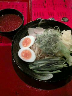 今日のRCCアナウンス教室は芥川龍之介の蜘蛛の糸の朗読を録音した。帰りの電車の中で、RCCアナウンサーの田中先生に、「朗読が、なかなか良くできてる。」と褒めていただいた。朗読の会に入ったら勉強になるよ、と言っていただいたのだけど、岩国には、無いんだよな~。これが。残念。***今日の晩ごはん***広島つけ麺のばくだん屋でつけ麺(並)+半熟卵¥800を食べた。↓もちろん、メニュー表の横に書いてある辛さのランキングから、選んだ辛さは、記録ものの20倍(最高ランク)口から火が、と書いてあるランクの10倍をはるかに通り越している。燃えた~~~!!!体が、ポカポカあったまった。でも、ぜ~んぜん平気~。最近、辛さに舌が慣れすぎて、どうかしちゃったかしら???