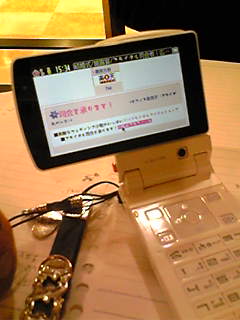 ゆうべは、結局、広島から午前様で帰宅した。ゴゴイチには、2月予定の新婦と婚礼司会の打ち合わせ。そう。先日急遽ネットから依頼があった方だ。彼女の携帯から見れる私のHPを見せてもらった。>このページが…携帯で見るとこう表示される。↓すっごーい!枠の配列は少し違うが、文字が小さくてややみづらい事だけを除いて、ほぼパソコンで見るのと同じ。携帯も、どんどん進歩してるのね~。披露パーティーの始まりに、ちょっとした人前式をやろうという話になり、東急ハンズのブライダル用品コーナーにある、結婚証明書を見に行くのにおつきあいした。場所は東広島市の、カラオケのシダックスで行われるが、新郎新婦は衣装もばっちり着るし、ケーキカットもあるし、キャンドルサービスも…。手作り風のほのぼのアットホームなパーティーになりそう。楽しみだわ~♪さて、昨日の私、実は、たまたま入った洋服店で、お気に入りの服を見ていたら、店員の若い17歳の女の子に、えぇ~!!!どう見ても30代後半位にしか見えな~い!と、言われて、超ゴ~キゲン。バーゲンで安くなってた¥2000のブリブリフリフリの、姫系リボン付ワンピを、すんなり買っちゃった。↓↑あぁ~、勘違いの40代!(あっちゃん撮影)こーゆーのが、似合うと思い込んでいる自分もコワイが、ホントに似合う自分は、もっとコワイ。↑誰も手に負えません。店員さんもだが、あっちゃんからも、アナウンス教室の仲間の皆さんからも、似合う~♪と、言っていただいて、ますます確信した。ナハ。こうして、最後の悪あがきのような、超若作りをして向かった、RCCアナウンス教室ナレーションコースも、今回が、一応3ケ月の期間を終了し、最終日となった。最後の今日は、懐かしの故吉田治美さんから学んだことのある、絵本「葉っぱのフレディー」の朗読だった。この物語は、人の一生と輪廻転生を葉っぱの一生に例えた、とても深い物語で、しみじみ読み込める素晴らしい作品だ。ふと、途中で、亡き師匠、吉田治美さんの事を思い浮かべ、何度も、ウルッとしそうになった。最後に、講師のRCCアナウンサー、本名正憲さんと、並んでパチリ記念撮影をしてもらった。↓本名先生、3ケ月の短い間でしたが、大変お世話になりました。次、先生の新しい教室が始まった時に、またもし私が入講していても、イヤがらずに、引き続きお相手くださいませ。