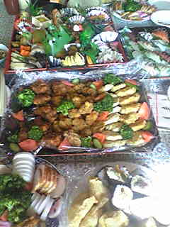 藤生の知人、H本さんのお宅で、お昼に、MOAメンバー同士の新年会だった。最初は千円のお弁当だけを皆で注文して、という話だったが、お世話好きなH本さんのことなので、ど~んと、こ~んな感じ。↓お弁当どころか、お鍋はあるわ、サラダもあるわ、大平もあるわ、で、昼間っから、こんな大ご馳走になってしまった。お蔭で、夜の今もお腹がパンパン。午後からは、昨年暮のかおるちゃんが、リンパ教室の申し込みに来てくれ、受講前のお試し施術を受けて、いたく感動してくれた。かおるちゃん:うわぁ~!リンパって、こーんなに気持ちイイものなんですね。私:そうだよー。かおるちゃん:あー!!!みるみる内に肩のコリコリが、小さくなって来ましたね。私:でしょでしょ。こんな経験って、今までしたこと無いでしょ。かおるちゃん:ですね!だって、しっかり揉んでもらっても、こんなにはならないですもんね。私:そうなんだよ~。かおるちゃんが出来るようになったら、ぜひ、旦那さんのKzクンやお子さんやお友達にもしてあげてね。かおるちゃん:おまけに、自分にもできますもんね。私:そうだよ。私ともお互い施術交換しようね♪かおるちゃん:イイですね。よろしくお願いしまっす♪そう。こうして、お弟子さんたちを増やして行くと、私も、やってくれる人が増えて助かるってワケで…。そっちの面でも、ホントにありがたい事ですわ。