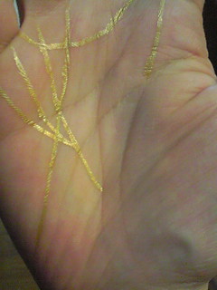 手相が変わった!!!↓ゴールドで書いてある線が、毎日書いていたら、しっかりと出てきた線。元々あった線は、太く強くなり、線が、無かったところにも、新しく出来た。運命線は元々くっきりとあったのだが、財運線、太陽線を書き足していたら、はっきりくっきりしてきた。こりゃ、ホントに正真正銘の強運相だ!!!おススメの本↓「手相を書く」だけで運命が変わる!ハマった事は、当分、根気強く続けるのが、私の長所かも。今日は帰りが深夜だった。当分毎日忙しくリンパの日が続く。ありがとうございます。