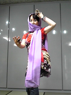 タイガ君主催の、ウインドニュークラブの、カップリングパーティーの司会だった。思い起こしてみれば、このパーティーは、私が、主催していた頃の平成14年頃から、もう、かれこれ7年目になる。開催場所は、前回の3月29日(日)に引き続いて、またもやタイガパパのお店MIX☆8今回は、男性がいつもより高い年齢が対象だった。↓いつもの様に大好評の、二コレットさんの手作りケーキを、お手伝いしている最中に、裏でいただいちゃいました。メチャ、おいスィーッ♪タイガ君の嫁のトッチと、娘のタルちゃんも、お手伝いに来た。↓私が、タルちゃんでしゅ~!パーティーの用意をしている間に、ひょっこりタイガパパがお店にやって来たので、ベリーダンスを見てもらった。タイガパパ:うーむ。まだまだだねぇ~。いやん。まるでタレントのオーデションだわ!なかなか手厳しい。でもでも、ワタクシメは、こんな事でくじけないわよ!闘志を燃やして顔晴(ガンバ)るわぁ~!カップリングパーティー終了後、ベリーダンスの猛練習に励んで、ダク汗になった。嫁のトッチもタルちゃんと一緒に、そります!そります!↓トッチは、フェイスヴェールをして、まるで怪しいアラブの子連れママ風。それを写しているタイガ君の脊中は、なぜかイギリス国旗。もう~、ワケわかんないです!何でもアリです!このお店では!このお店、近々、フィリピンバンドも入るそうで、ますます盛り上がりそうです。(私の、ベリーダンスデビューは、まだまだ先になりそうですわ。ホントの話。)しかし・・・。色々サイトを見てて知ったのだけれど、日本人のベリーダンサーも、結構、たくさんいるもんなのねぇ~。>日本人ベリーダンサー事典
