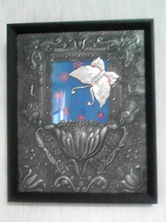 押し花、グラスアート、レカン、メタルエンボッシングなど、多彩な工芸の教室の先生をしている、ステキな癒しの友達、マッちゃんの家で、新しい作品をいくつか見せていただいた。自宅の一室がアトリエになっていて、その部屋では、作品制作を行なわれたり、いくつかの作品の展示がされている。静と動、彼女と私が友達だというと、へぇ~?と、いつも、首をかしげられる。一見、まるで正反対なタイプの私と彼女なのだが、彼女との交友は、ずいぶん長い。時折、忙しい中を縫って、彼女の家で「静」を満喫してまったりと過ごすのも、リフレッシュのひとつになり、とてもありがたい存在だ。メタルエンボッシングの作品↓グラスアートの作品↓ステキだね~♪
