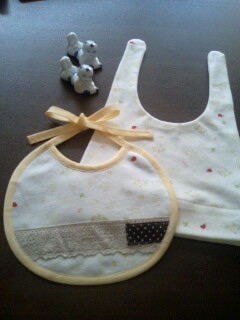 そして今日もお腹を掻きつつチクチク。スタイ完成。