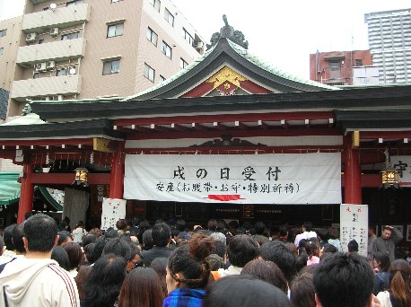 19日に妊娠5ヶ月最後の戌の日の参拝に水天宮まで行ってきました。平日だし楽勝だろうとたかをくくっていましたが行ってびっくり。水天宮のある十字路からさらに200メートルくらいの長蛇の列!最後尾で聞くと2時間待ちくらいだという(11時30分時点)。そういえば大安だったのよね(涙)旦那さんが代休で一緒に行っていたのですが丁度お昼時だったのでとりあえずお昼を食べてから戻ってこようということに。お昼は人形町あたりをぶらぶら探したがいい店が見つからず結局水天宮近くのインドカレー屋で落ち着きました。インドカレー大好き☆本当はあまり辛い食べ物はいけないんだけど・・・店を出てから水天宮をみるとだいぶ列は減っているようなのでもう一度並んでみると案外早く水天宮まではたどり着いたが境内でも人がてんこもり。こんなに妊婦を一度に見れるところはそうないであろう、ある意味圧巻の光景!もしすいていたら受けたかもしれない特別祈祷はパスし、腹帯だけもらってお参りをして水天宮を後にしました。腹帯はいつもしていたいと思い、縫い付けるタイプにしてみました。(サラシタイプは巻けないし)切られていないサラシの腹帯に比べ値段が安いので気が引けましたが、神様は値段で参拝者を区別しないはず!(と信じたい)その後は予定通り日暮里に出て必要なものを色々買ってきました。旦那さんは繊維街入り口のモスで1時間半も待っていたという(汗)でも、ト○トで安くてなかなかよいトレーナー地が買えました♪最近ニットを縫うのに興味津々なのでとりあえず安い生地で練習するつもり。うまくできたら旦那さんのものも縫ってみようかと。折角行ったので激安生地ももっと物色したかったのですがトレーナー地とリブを2着分買ったところで妊婦が持てる重さの許容範囲を超えてしまい残念ながら今回はここまでとなりました~。次回はキャリーを持って買いに来なければ・・・写真は縫い付けた腹帯と一緒にもらったお守り。日暮里に寄ったせいで帰りが遅くなりあわてて縫い付けて何とか19日中に付けることができました。腹帯は別の時に買ってあったもの。これでやっと付けられる~