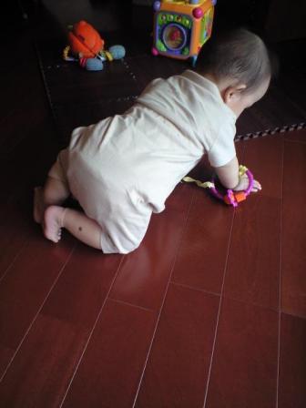 23日は元町チャーミングセールに行ってきました。旦那が会社のゴルフ大会だったので両親が元町に住んでいるおばのところへ車で遊びに行くのに便乗して連れて行ってもらいました。お目当てはANTSHOPの食器!この店の丈夫でモダンでかわいいデザインの食器のファンで結婚当初から少しずつ集めています。チャーミングセールではアウトレット品が半額で出ているので狙い目!結局パン皿3枚とボウル5つをゲット。写真はよつばい体勢の息子。片足をまげてもうすぐ自分でおすわりできそうな雰囲気だがこれ以上はどうにもならずにぺたんと腹ばいになっています。そういえばすこーしだけ吐く回数が減ってきました。じゅうたんをとりはずしてフローリングにしてから雑巾片手に拭き掃除の毎日だったのですが少しは楽になってきた♪