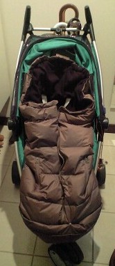 先日注文したAirBuggy ダウン製フットマフが届きました(ずいぶん前ですが)。エアバギーミミ用ですが、クイニーザップにも取り付けられるとありクイニー専用と迷いましたがダウン製が欲しかったのでこちらを購入。クイニーザップにどのように取り付けられるか分からず購入を迷われている方も多いのではと思い写真を載せておきます。かなり大きいですが下に擦ることは全然ありません。ただ、一番下のスナップを止めて少し小さいバージョンにして使っています。「AirBuggy mimi」と下のほうにブランドロゴがあるのですが色がブラウンだと目立ちませんし下のほうなのでそもそも見えません。のでクイニーでも全く問題ないな~と思いました。子供が乗ってファスナーを一番上まで閉めればすっぽりと肩まで覆うことができますが動くのが好きな息子の場合は少し開けて手を自由にしないとご機嫌斜め。なので外出時は家着のままというわけにはいかず一枚上に着せています。といってもやはりかなり暖かいようで外で寝てしまうこともしばしばでそのときはファスナーを上まで閉めてみのむしのように寝ています(笑)色もブラウンはカーキに近い色でミントの緑によく合いました!これでもう少し寒くなっても大丈夫♪これで駅伝を応援に行く!と言ったらアホかと言われましたが(汗)