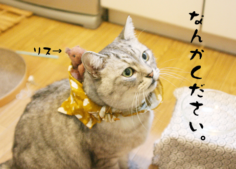 背中にリスのぬいぐるみ。さっきご飯食べたじゃん!背中のリス・・しまさんは、やっぱり気にならないらしい(笑)普通より少し思い首輪ぐらいにしか思ってないみたい。先日、フラワーベースの日記で海苔を一生懸命取ろうとしたしまさん。☆そんなしまさんのちょっと切ない動画☆学習したしまさんは、フラワーベースからは何かいいものが出てくると思ったらしい?フラワーベースには何も入っていませんよ・・・(^-^;ぽちっと「学習したしまさん」に応援クリックお願いします。 ↓ ↓ (クリックすると次のページに飛びます。それでしまさんに1票投票したことになります)--------------------------------------------------------------------↓しまさんの別館新築中。 ※別館でポストカードのお知らせしてます。
