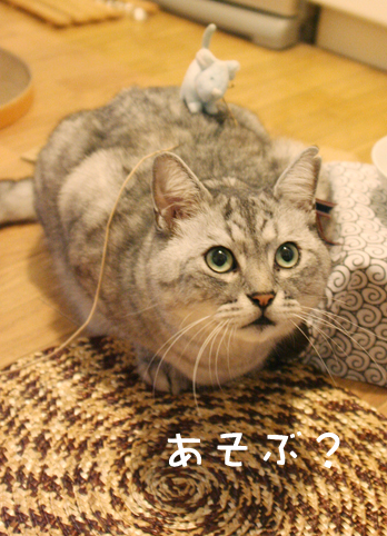 あそぼー!あそぼー!と走り回るしまさん。こっちに来たので背中にネズミを置いてみた。そんなときに、不意につかまったしまさん。おろせー!おろせー!とアピール。今朝のこと、今日も散歩に行くのだろうと思い用意していたら玄関先で「今日は行かないニャ」と自らリビングへ逆戻り。昔は、雪の中、雨の中、風の中かまわずネコパトに行っていたのにさー。↓お願いします!ぽちっと「捕虜的しまさん」にクリックお願いします。しまさんが何位か見てみよう! ↓ ↓ (クリックすると次のページに飛びます。それでしまさんに1票投票したことになります)--------------------------------------------------------------------↓しまさんの別館新築中。 ※別館でポストカードのお知らせしてます。