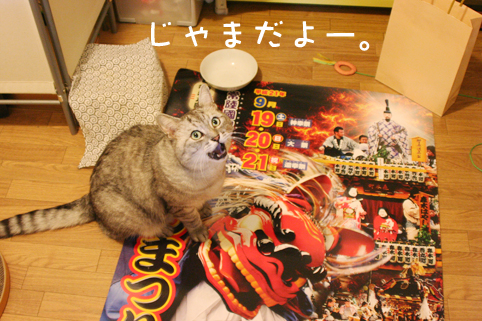 フローリングにポスターを広げてみる。容赦なく踏む(笑)まぁ、いいけど・・・。ポスターは茨城県の石岡のおまつりのポスター。関東三大祭りで、昨日から三日間の盛大なお祭り♪今年のポスターは私がデザインしました(^-^)なので、電車に乗ったときや、街中でポスターを見かけるとやっぱり嬉しい♪このポスターのコンペに参加して結果待ちの日の朝、実は、このポスターの下書きに使った紙にしまの落し物・・がありました。「えぇー」と思ったのだけどあれは、きっと「うん」をつけてくれたんだなーと今思えば、そんな気がします。さすが、しまさん!私のいいパートナー(^-^)「幸運を呼ぶネコしまさん。」に一日一回投票クリックお願いします。 ↓ ↓ (クリックすると次のページに飛びます。それでしまさんに1票入ります。)