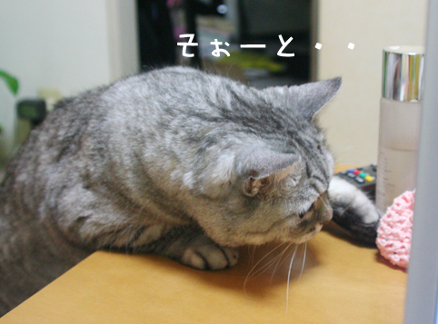 食卓の上を物色して何か欲しいものをみつけたらしいしまさん。私が気づかないとでも思っているのか(笑)私が持っているのは、ティッシュですが・・・(笑)最近は、しまさんなんだかますますワガママに・・・自分の主張が通るまで、横でニャーニャー言い続けるしまさん。そこまでの粘りってすばらしい・・ってネコに感心(笑)「がんばるしまさん。」に一日一回投票クリックお願いします。 ↓ ↓ (クリックすると次のページに飛びます。それでしまさんに1票入ります。)