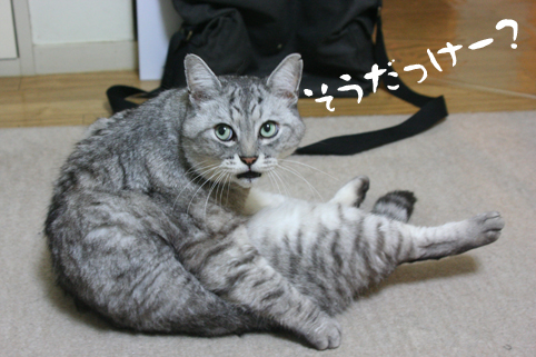 全快とまでは行かないけどかなり元気になってきたしまさん。そんなしまさんを残し会社へ行ったけどお昼休みに様子を見に戻ってきた。しまさんは、待ってましたとばかりに「おひざに座りたいよ」と甘えてくる。まだ、本調子じゃないのかな?と思いつつでも、ウロウロしてるし台にも飛び乗れるようになったし大丈夫だろうなーと思いつつ昼休みも終わり会社に戻る。しまに「会社に行ってくるね」といつもようにキーケースをじゃらじゃらっと見せ、鍵をしめてでかけた。車に乗って少し行った後で忘れ物に気づき再び家へ。急いで、玄関の鍵を開け、部屋に入ると・・・キッチンの上でなべのふたを一生懸命開けようとしているしまと目があった・・。しまは「やべっ」っという表情を一瞬したような気がした(笑)私が会社に行ったと思った後で「さぁ、物色」とでも思ったのでしょう(笑)まぁ、そんな元気があるならいいや。とそのまま会社へ戻った。で、今日の夕方、獣医さんに言われていたので今日もしまを病院へつれていった。診察してもらいしまさん、熱もさがりお薬を少しもらい大丈夫でしょうと言われ帰宅。診察台の上では震えていたくせに~(笑)↓くつろぐしまさん。元気になってよかったよ(^-^)それから、あたたかいメッセージをどうもありがとうございました(^-^)しまに「みんな心配してるよ、しま」ってよ~く伝えておきました(笑)「復活!しまさん」に一日一回投票クリックお願いします。 ↓ ↓ (クリックすると次のページに飛びます。それでしまさんに1票入ります。)