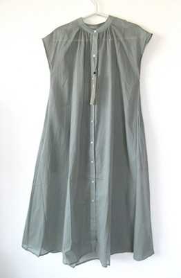【メール便B】綿ボイル バンドカラー フレンチスリーブ フレア シャツ ワンピー...