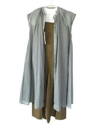 【メール便C】【送料無料】綿ボイル バンドカラー フレア 長袖 シャツ ワンピー...